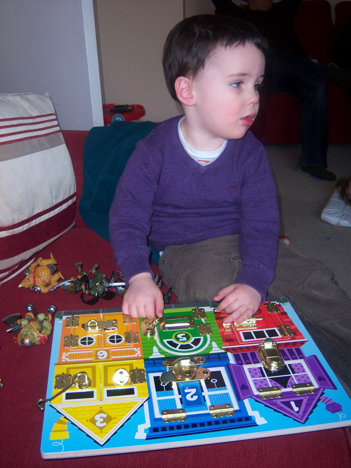 One of these I thought was a clever idea. This was a Melissa and Doug ‘Latch Board’. It is simply a board with six different types of latch on it. When you open each latch, it reveals a different picture and number. It is great for developing fine motor skills. My son enjoys doing it and his little sister is also fascinated (much to his dislike!).