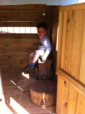 Sometimes when we have visited The Royal Oak before, the pub garden has got a bit crowded and the children’s play area slightly manic. But today our only company in the garden was a group of mums with small children. My son played happily in the garden and apart from the usual scuffles over the playhouse, the kids all played well. My son liked the playhouse, the rope swing and of course, trying to escape by continually running up the steps to get into the pub.