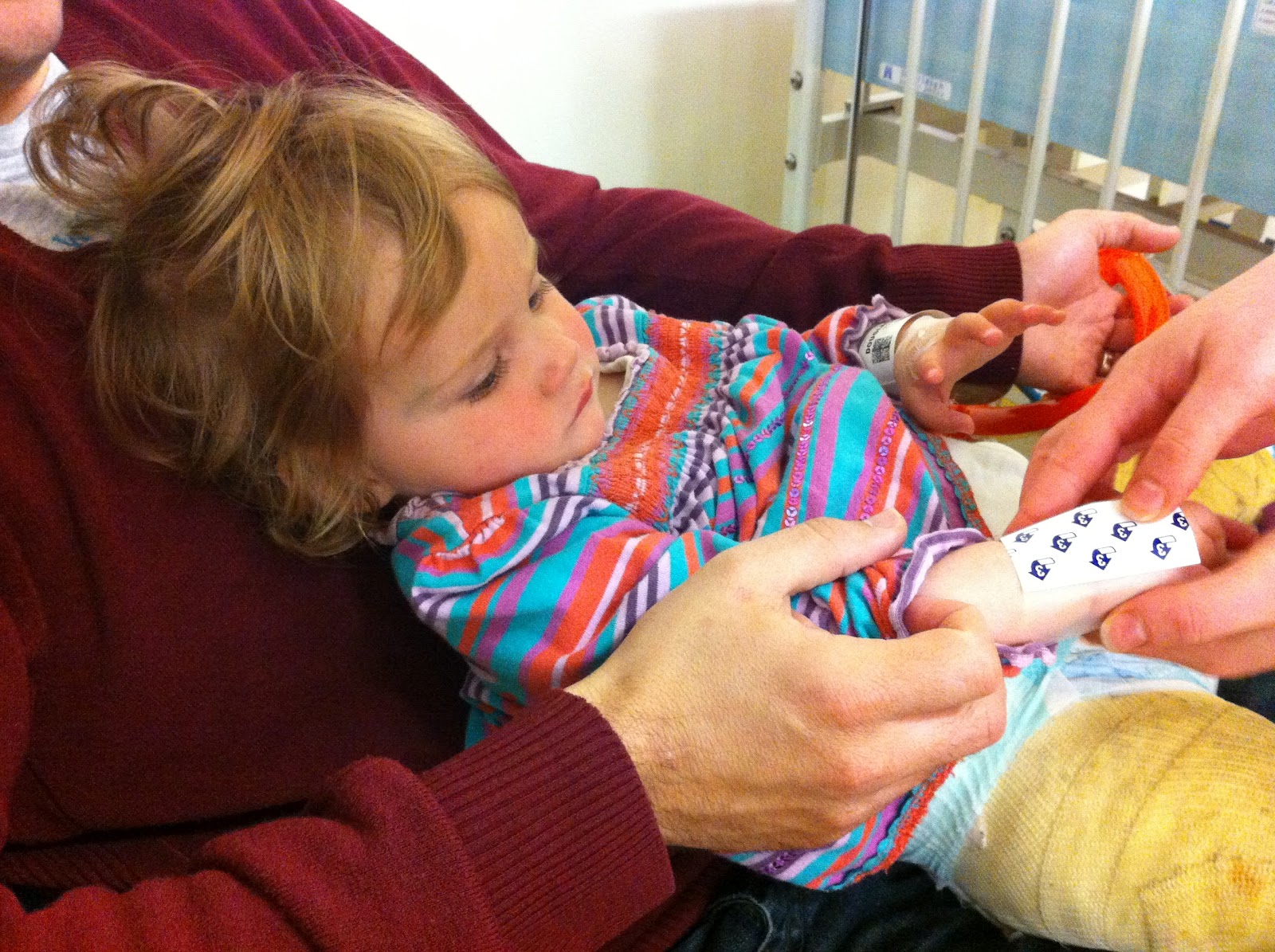 Spica Cast change day started unnaturally early. My daughter was due at Bristol Children’s Hospital at 07.30 so we had to leave the house close to dawn to be there on time. It felt strange pushing my daughter in her pushchair, down our rain-splashed street, as I have done so many times before, but on this occasion so early and to a different destination other than supermarket, pre-school or playgroup.