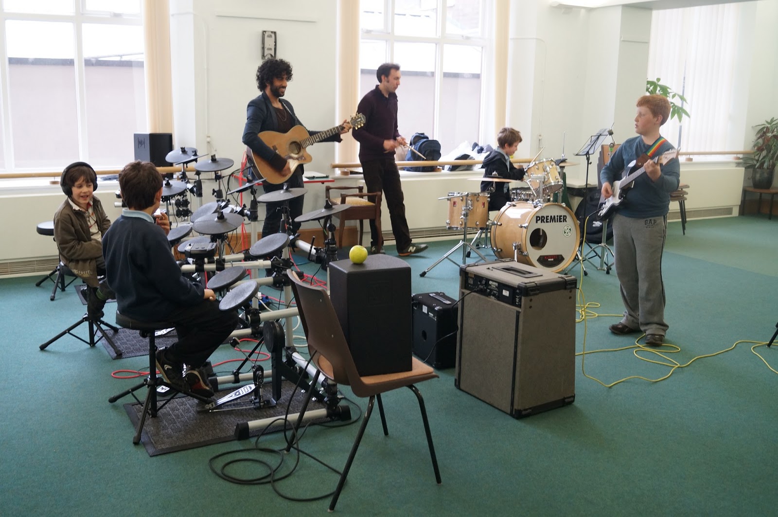 In each class, the first hour is for group instrumental lessons in guitar, bass guitar, drums or vocals. The second hour is called ”Plug and Play” where bands are formed and students get a chance to perform together.