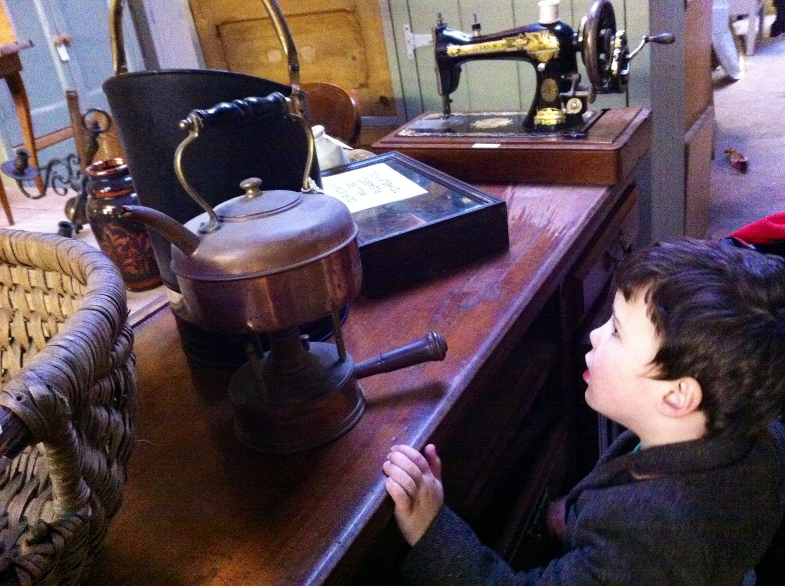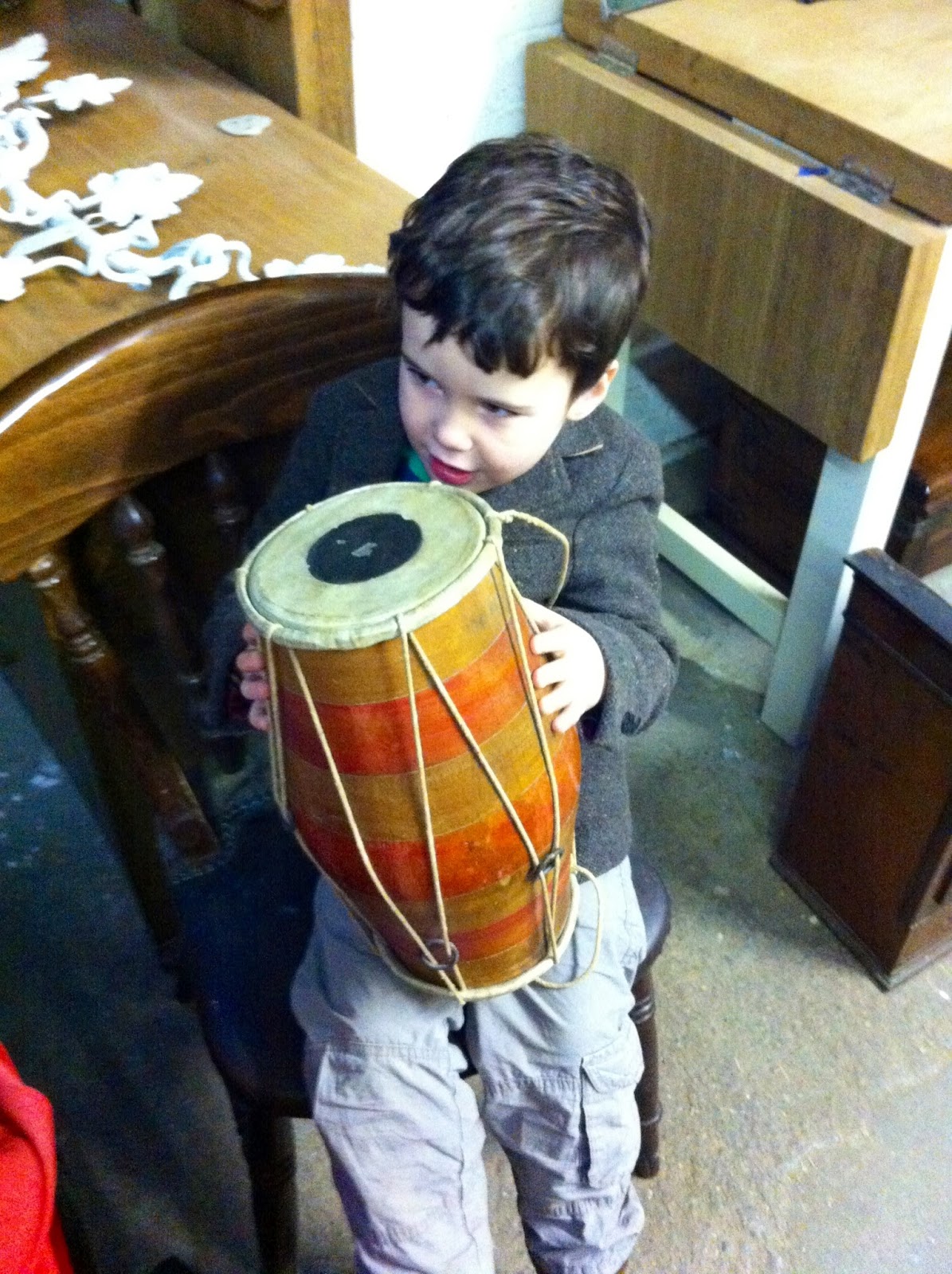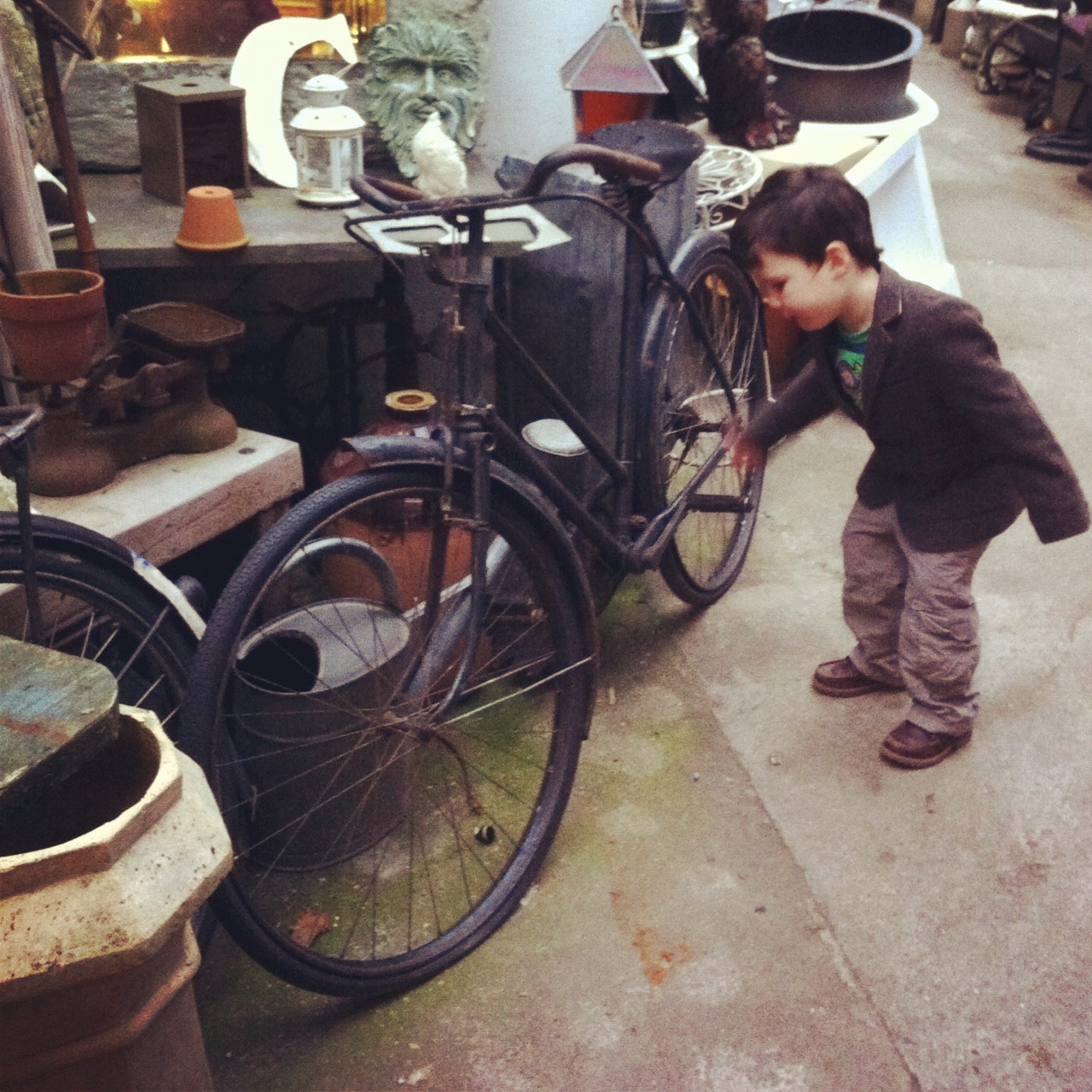 My children roamed the yard, delighted by hanging tables, rusty sets of keys and old cutlery. They were fascinated by a gleaming black and gold Singer sewing machine, an ancient washing mangle, copper kettles, rickety old bicycles, disgruntled looking statues, battered old suitcases and bongos thrown into the mix.