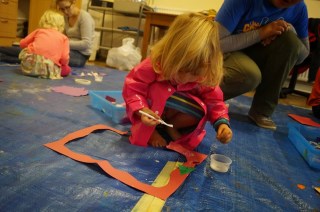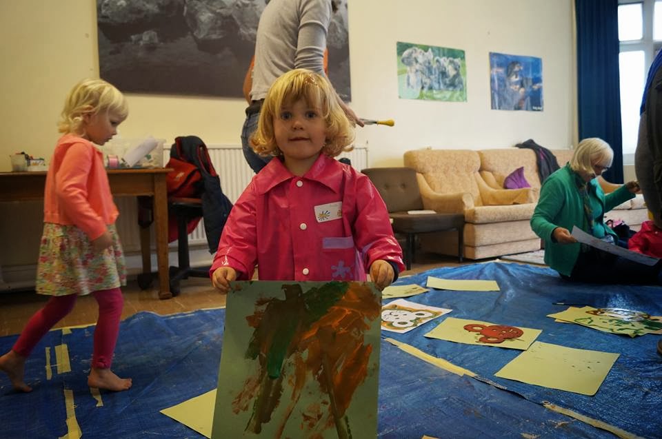 The Creation Station differs from art and craft activities in playgroups in that the whole floor is taken up with the activity so that the children can really get stuck in to their arty creations and fully explore the paints and materials on offer.