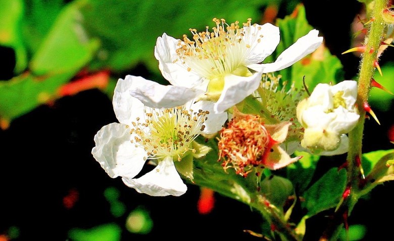 Honeysuckle, bramble flowers, foxgloves, ox-eye daisy, herb robert and bird’s foot trefoil are all abundant.