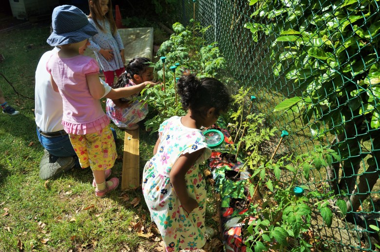 The garden also contains a vegetable patch and herbs and when I visited, the children and pre-school worker were using a magnifying glass to learn about the plants and were also enjoying smelling the tomato plant and rosemary leaves to learn the different aromas.