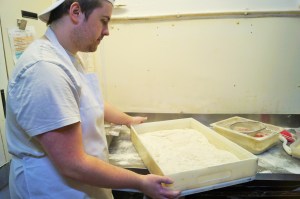 While I was there I watched one of the bakers make some Focaccia with Kalamata olives which was then baked in one of the bakery ovens ready to be sold later that morning.