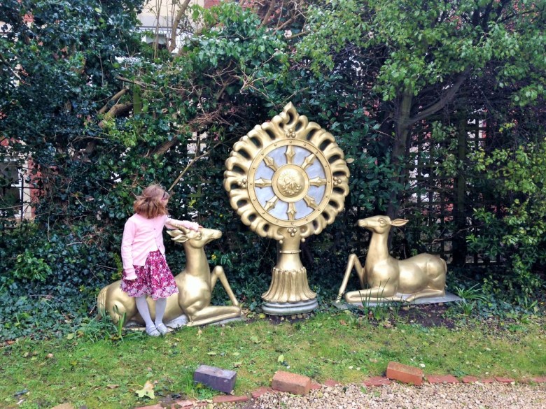 In the warmer Summer months there’s a beautiful garden which your children will love exploring; there’s grass to play on, little steps to climb, plus colourful ornaments and Buddhist figures hiding amongst the flowers.