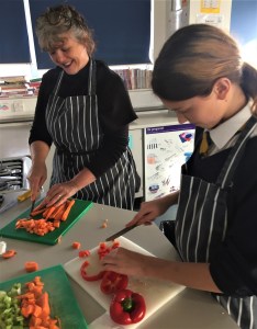 The Year 7 parents/carers, together with their children, then have the opportunity each week to put their newfound knowledge into practice as they prepare delicious nutritious recipes with their children to take home for that evening’s dinner.