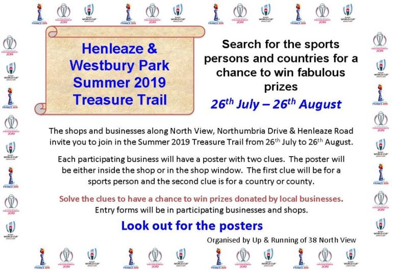 53 businesses along North View, Northumbria Drive and Henleaze Road are taking part in the trail. Solve the clues to find sports persons and countries and have a chance to win prizes donated by the local businesses!