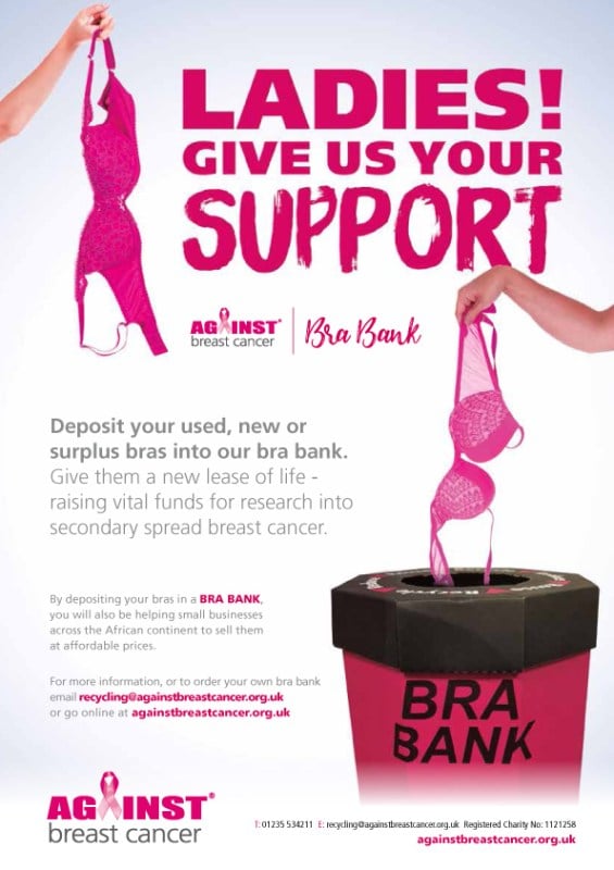 Do you have any bras you would like to get rid of? The Hub, in Lockleaze, has recently introduced a ‘Bra Bank’ for women to deposit their unwanted bras, while at the same time, raising money for the charity, Against Breast Cancer.