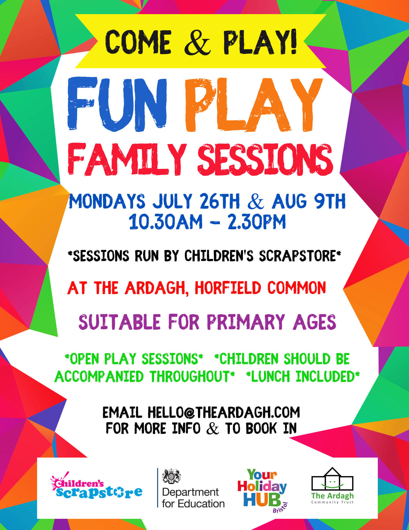 This summer there will be two free fun play family sessions for primary school-aged children at the Ardagh, Horfield Common.