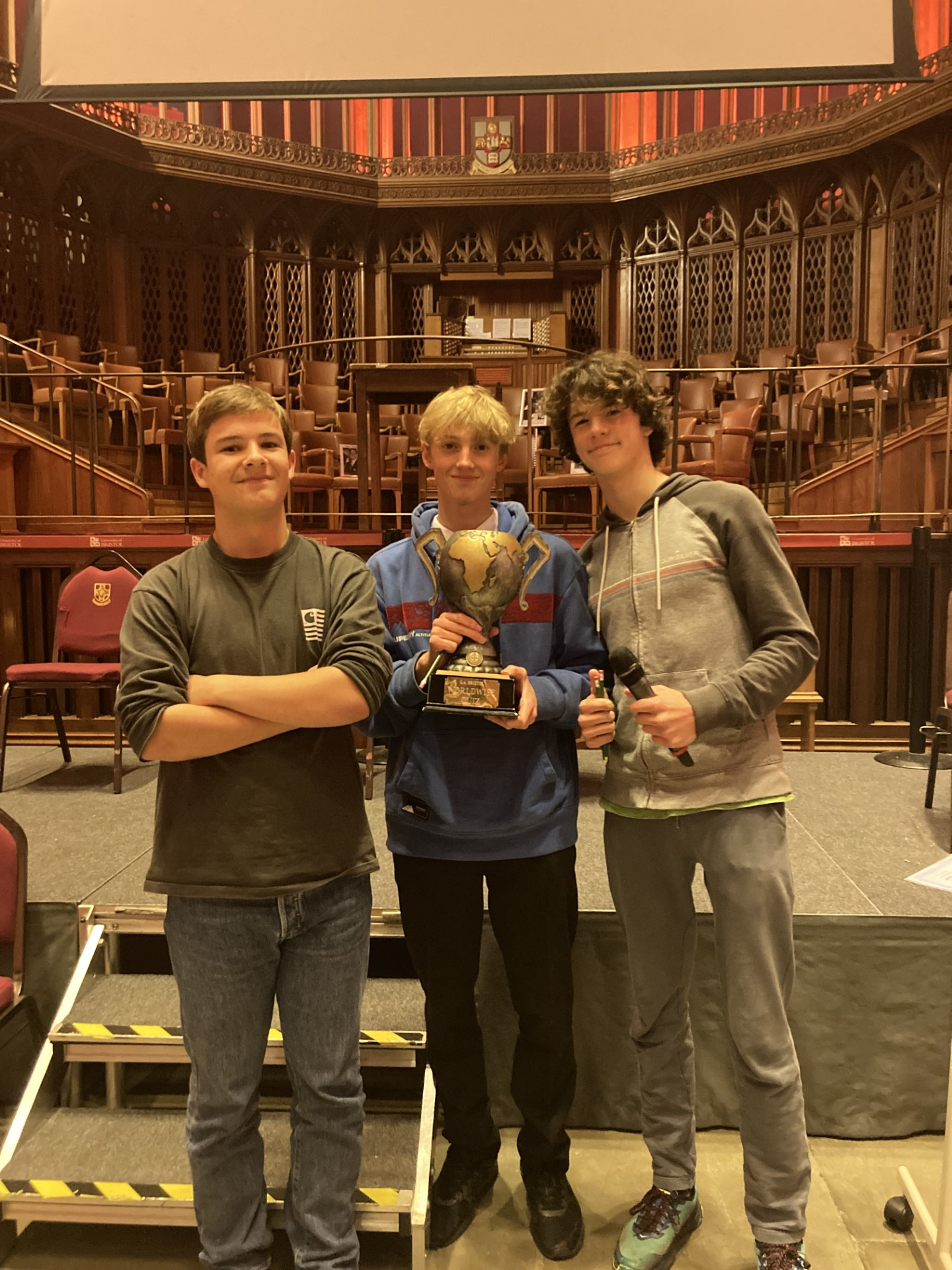 Fairfield High School students Reuben, Toby and Elliot have made history by bringing home the WorldWise Quiz trophy by smashing all previous scores and astounding professors, in an accolade won by private schools in the past few decades. The quiz at the University of Bristol, and organised by Bristol Geographical Association, saw Key Stage 4 students across the city compete in topics such as the naming of cities from photographs, plus the answering of wide ranging challenging questions on GCSE Geography content.