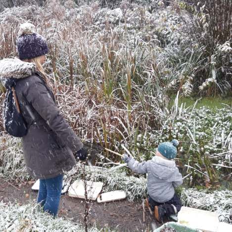 It’s also a great chance for you both to be outdoors and active, and get some sunlight in the colder months. And when spring arrives, you and your toddler can see the garden wake up with with little shoots and flowers, and spot the tadpoles in the pond!