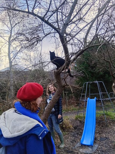 And I’ll leave you with quick tale of villainy from local rascal Harry the Cat who stunned all of us at the toddler group and caused fury to all the local corvids by climbing all the way up the magpie’s pine tree on the edge of the garden.