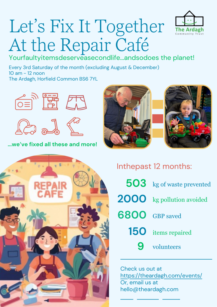 Got a wobbly chair, a silent radio, or a zip that’s given up? Bring it along — our Repair Café is back this month, and together we’ll give your much‑loved items a new lease of life.